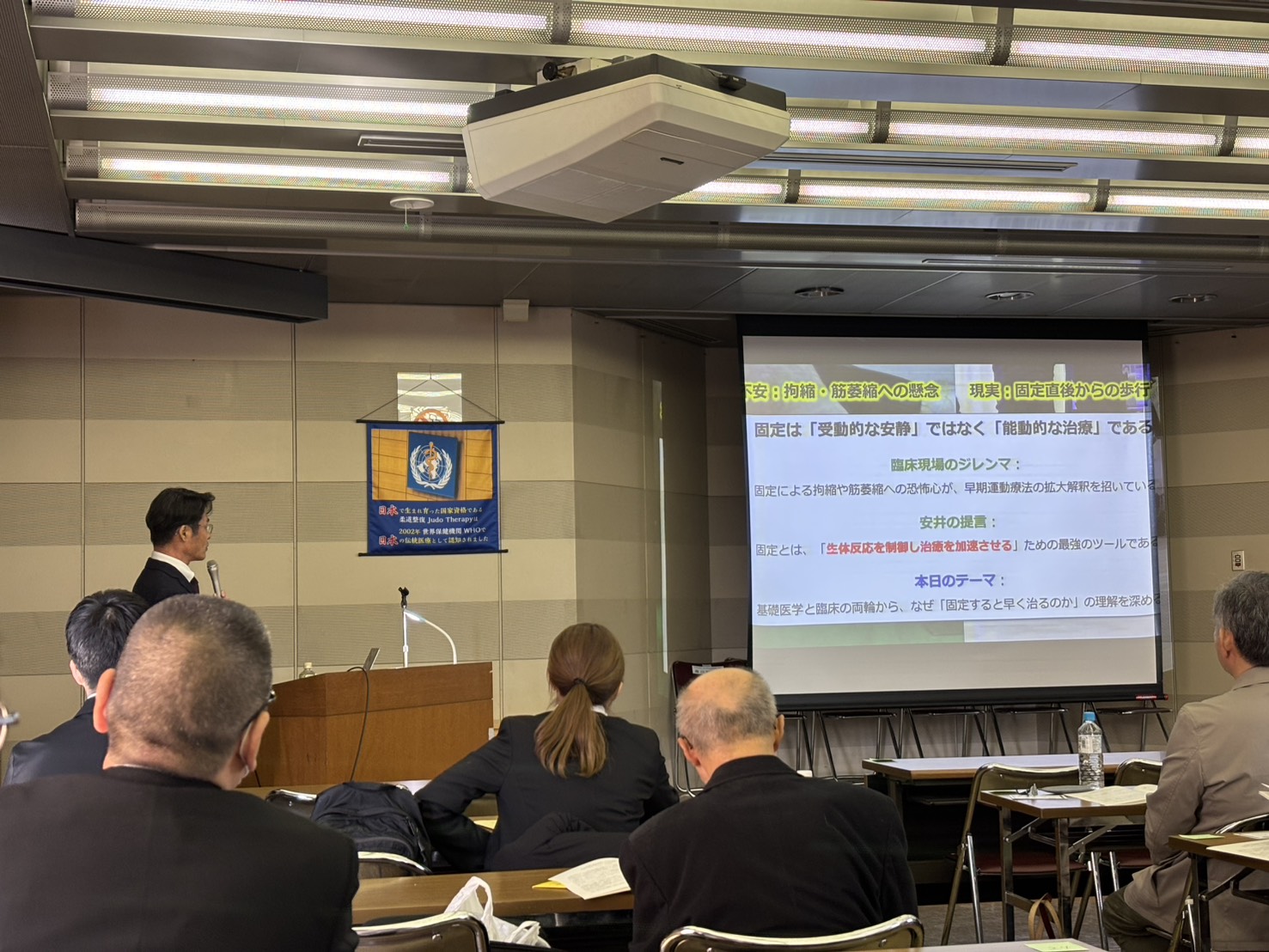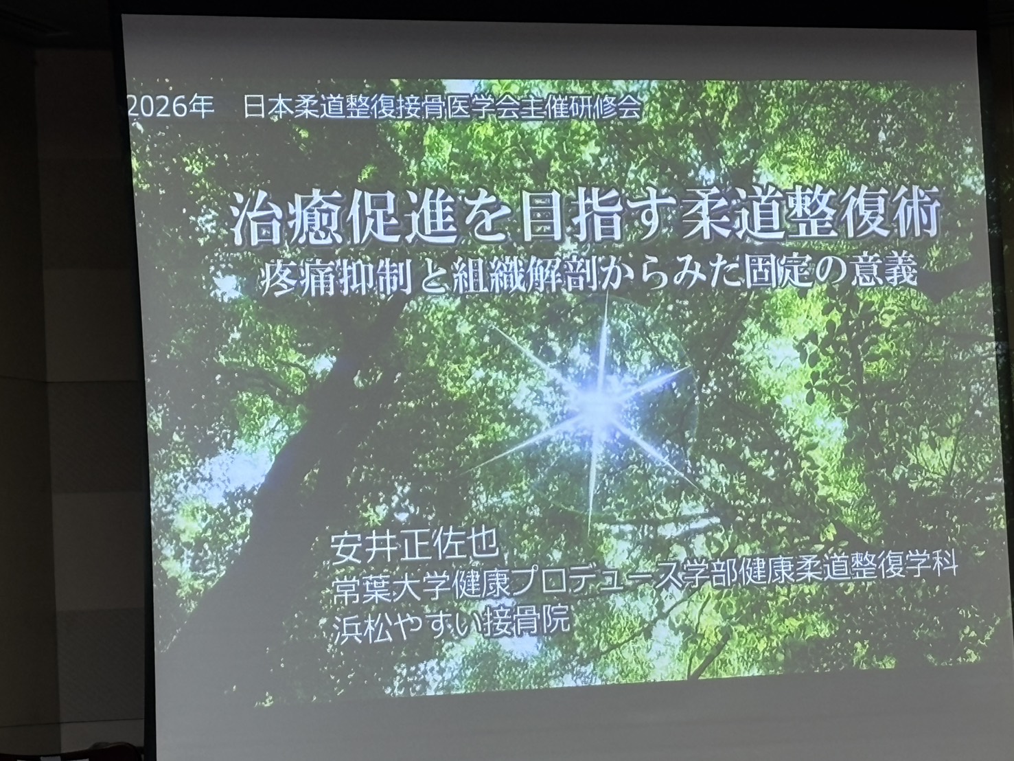2月23日(月・祝)、愛知県にて開催されました「一般社団法人日本柔道整復接骨医学会主催 2026年研修会」におきまして、安井が専門講座の講師として登壇いたしました。